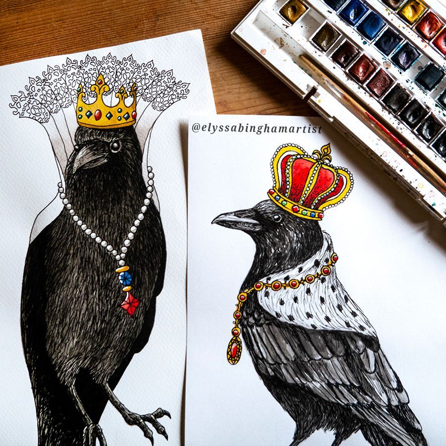 A crow’s court is the myth that a crow that has committed a bad deed will be encircled by a group of crows to be judged and attacked. It is also associated with the more common term, ‘a murder of crows’. There is believed to be a hierarchy within a flock, some birds may attack or peck at another if they appear unfamiliar to them and so given the term ‘pecking order’. With magical, medieval and justice themes surrounding this piece, each hand painted element has been intricately positioned and symbolic to ‘a crows court’.