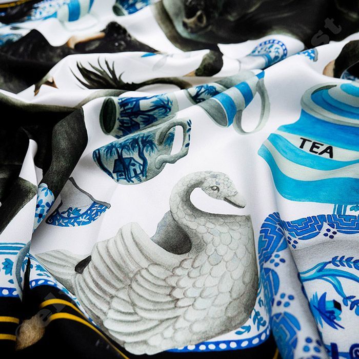 Once the final artwork is completed, the design is sent for printing. The scarves are digitally printed onto lovely silk or gorgette fabric in the UK with sustainable water based inks, with an OEKO-Tex Standard 100 certification - in other words, no harmful inks are used.