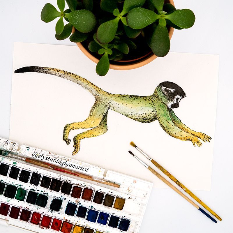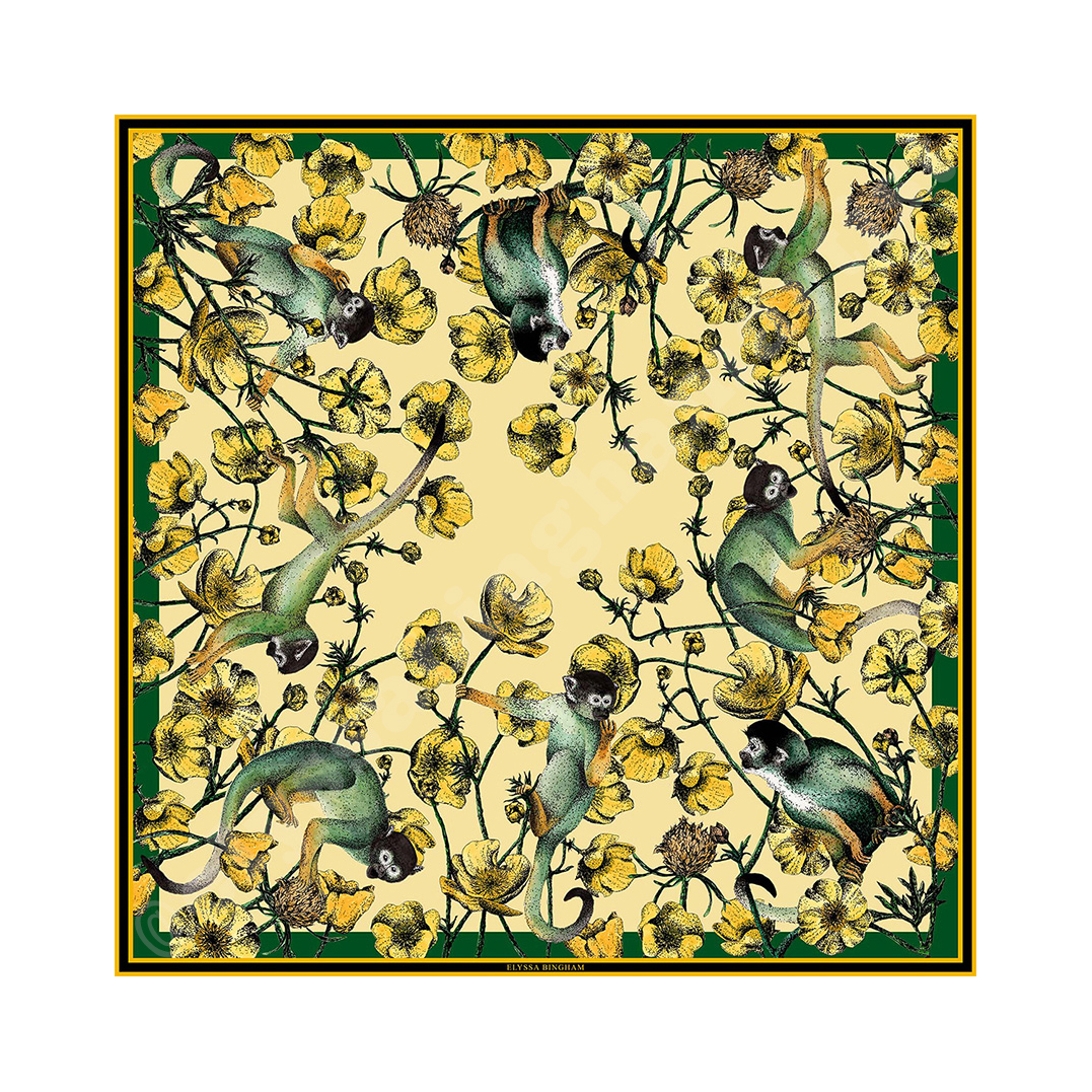 Each element is symbolic to childhood and playful youth, encorporating paintings of squirrel monkeys and yellow buttercups. The monkeys signify happiness, mischief and boundless energy only enahnced by the yellow buttercups, synonymous with joy and innocence.